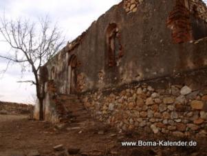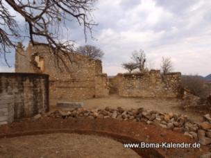 Boma Westseite (vorn rechts erhaltene Südwestbastion) Boma von Südost (vom Friedhof aus gesehen)