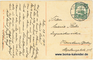 gelaufen von Daressalam nach Konstanz, Poststempel Daressalam 1.5.14;