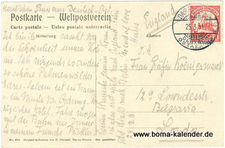Vincenti; Poststempel Daressalam 25.3.11 gelaufen nach London; Eckbug oben rechts, sonst sehr guter Zustand, siehe Abb.; 24,00