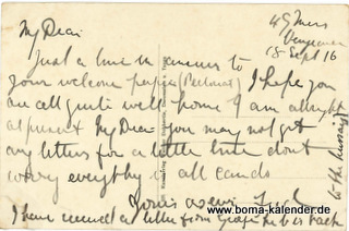 Walther Dobbertin; gelaufen als Kriegspost 1916 (Beutekarte), nicht frankiert,